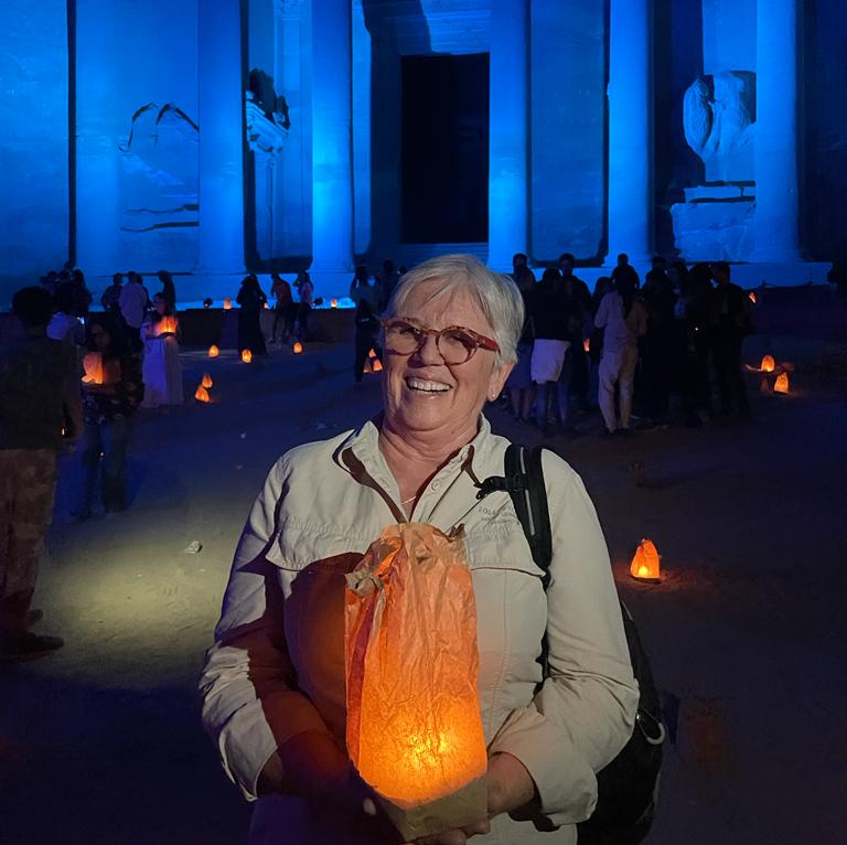 I grabbed the opportunity to see Petra by Night, even though we’d already been on the road for over 12 hours that day. Walking through the 76m high Siq (canyon) at night in absolute silence along a candle-lit path, with Bedouin music drifting in and out, was surreal and healing. My first glimpse of Al Khazneh – the iconic Treasury – was unforgettable.
